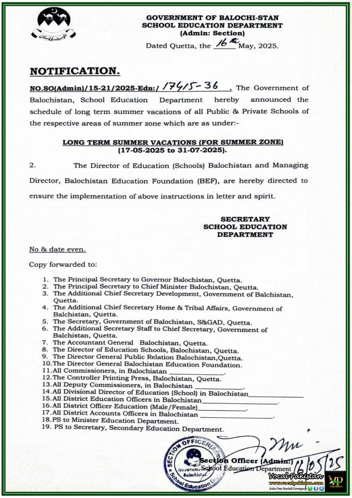 Notification / OM No. NO.SO(Admin)/15-21/2025-Edn:/17415-36 Dated 16-May-2025 Notification Issued By: Admin: Section, School...