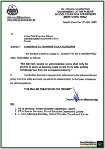 Notification / OM No. NO. SO (ADP-1)Dev.Prg-430/2025-26 Dated 02-June-2025 Notification Issued By: School Education Department, Government Of The Punjab