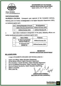Notification / OM No. No.SO(EM-I)DDCS/2025 Dated 26-May-2025 Notification Issued By: Higher Education Department, Government Of The Punjab Punjab HED