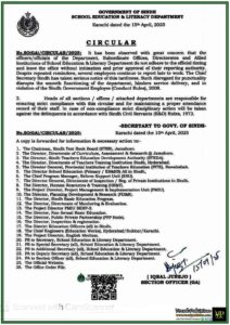Notification / OM No. NO.SO(GA)SE&LD/(Circular)/2025 Dated 26-May-2025 Notification Issued By: School Education & Literacy Department, Government Of Sindh Cultural