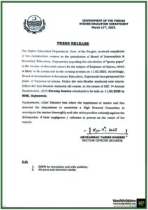 Notification / OM No. No. PECTAA/Director(T&C)/PLT 16-17/2025/07/ Dated 22-May-2025 Notification Issued By: Punjab Education Curriculum, Training & Assessment Authority