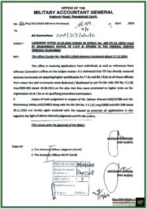 Notification / OM No. No. 187/Pay/AO-1/AAO-Advance increment Dated 10-April-2025 Notification Issued By: Office Of The Military Accountant General (MAG)