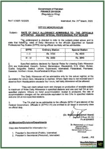Notification / OM No. No.F. 1(18)R-10/2025 Dated 21-March-2025 Notification Issued By: Regulations Wing, Finance Division, Government of Pakistan Government