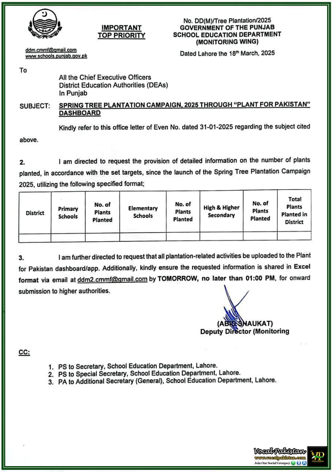 I am directed to enclose herewith a copy of Gazette Notification No. 13 of 2025 published in the Punjab Gazette (Extra Ordinary) at pages 2495-2515 regarding “Punjab School Management Councils Policy, 2024” for information and further necessary action.