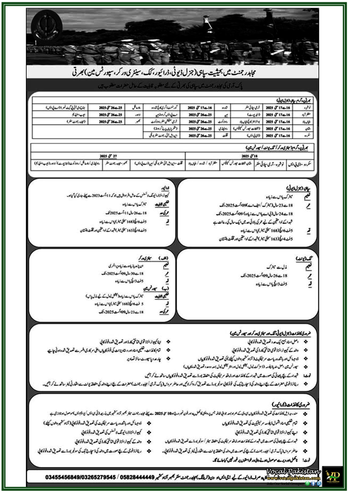 Are you looking for a prestigious career in the Pakistan Army? The Mujahid Regiment has announced exciting job opportunities for Sipahi (General Duty, Driver, Cook, Sanitary Worker, and Sportsman). This is your chance to serve the nation while securing a stable and respected career in the Pakistan Armed Forces.