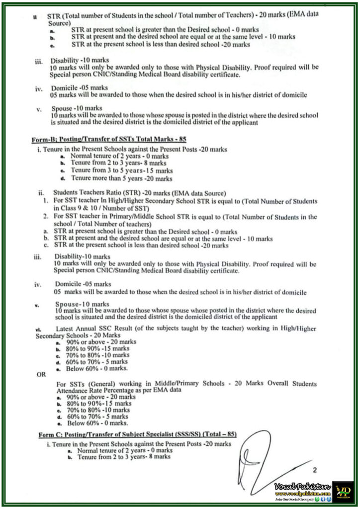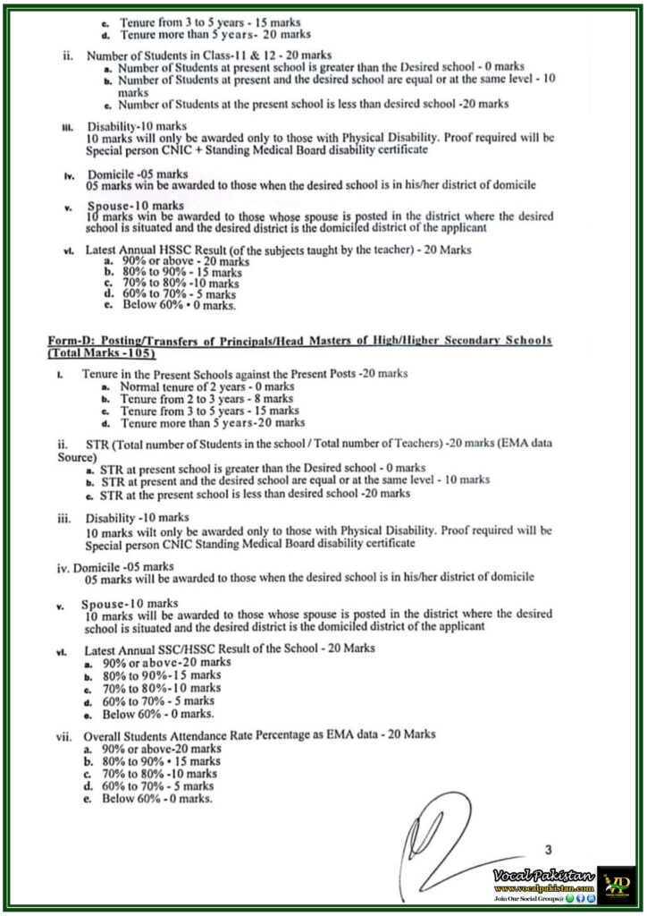 2.                    The indicators as per Form (A, B, C & D) will be considered for posting/ transfer as per detail given below: