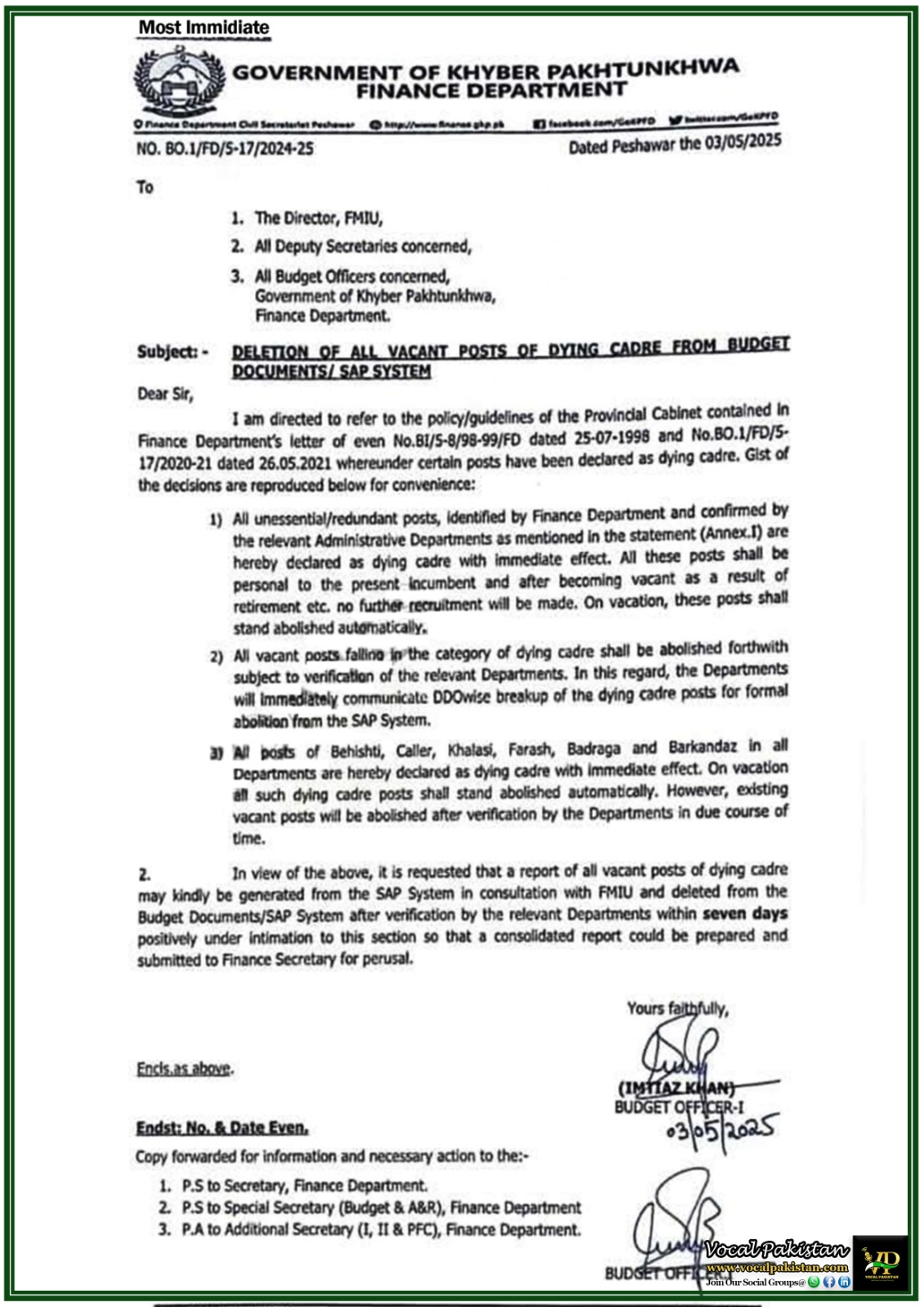 Notification / OM No. NO. BO.1/FD/5-17/2024-25 Dated 03-May-2025 Notification Issued By: Finance Department,...