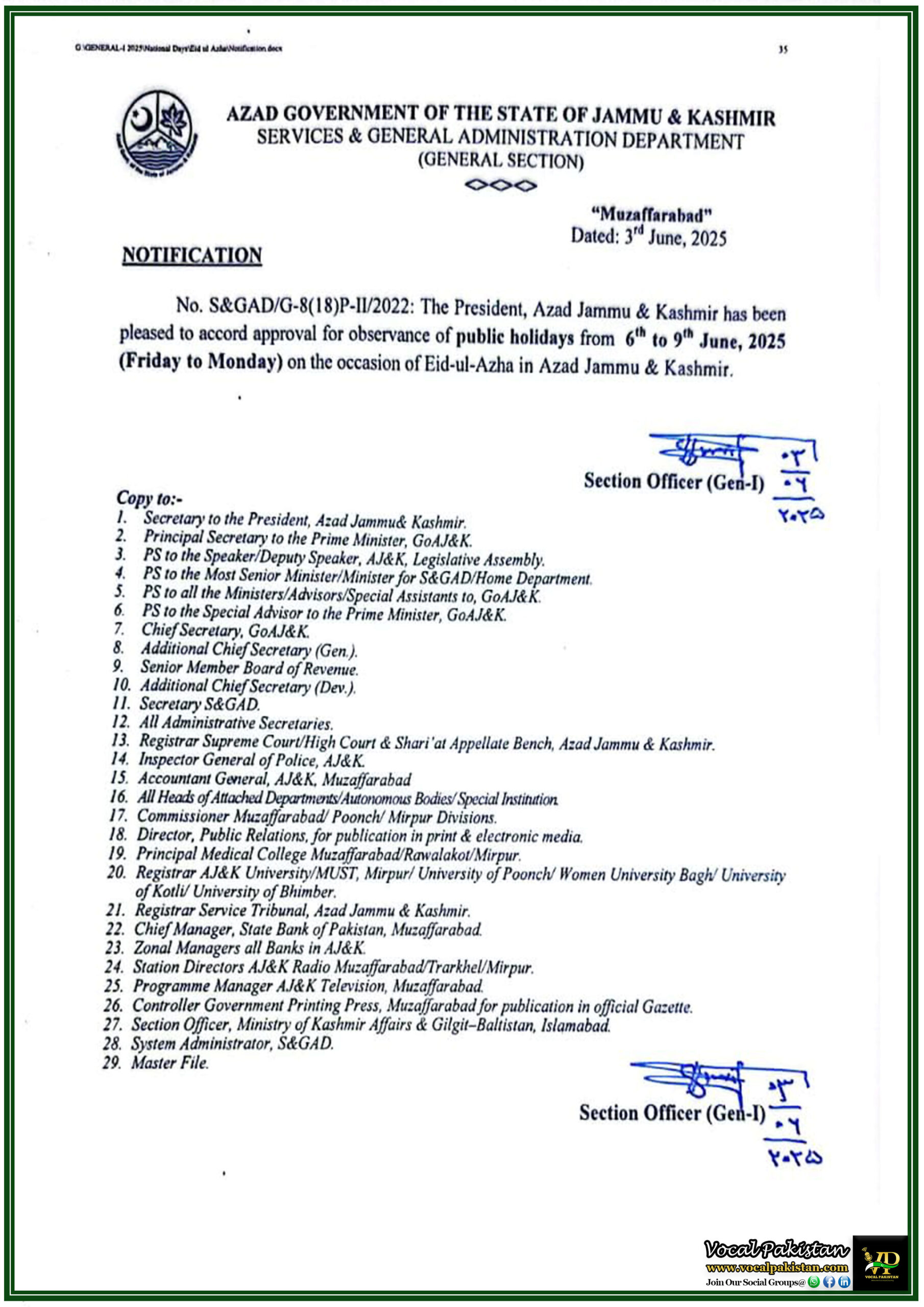 Notification / OM No. No. S&GAD/G-8(18)P-II/2022 Dated 03-June-2025 Notification Issued By: General Section,...