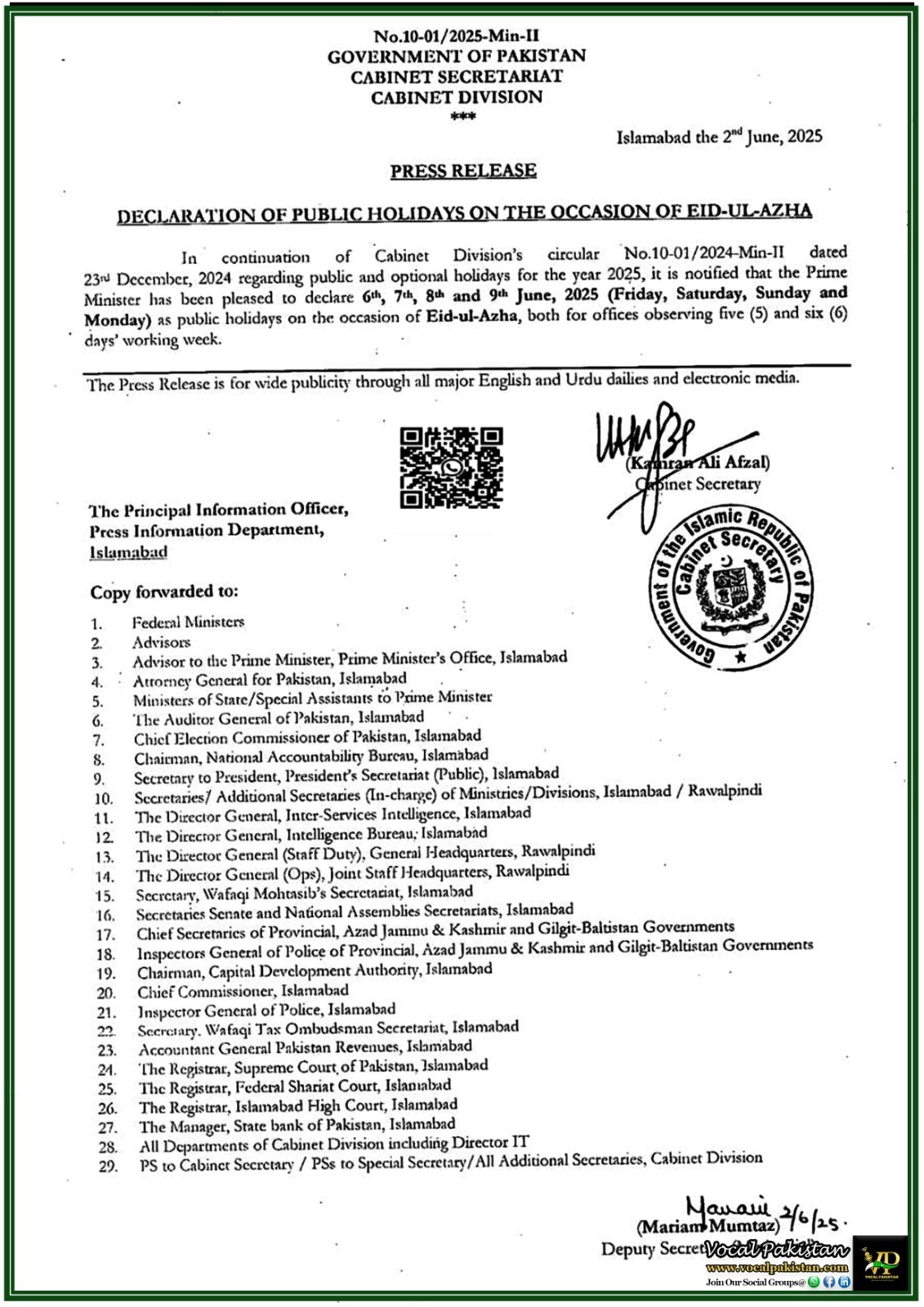 Notification / OM No. No.10-01/2025-Min-II Dated 02-June-2025 Notification Issued By: Cabinet Division, Cabinet...