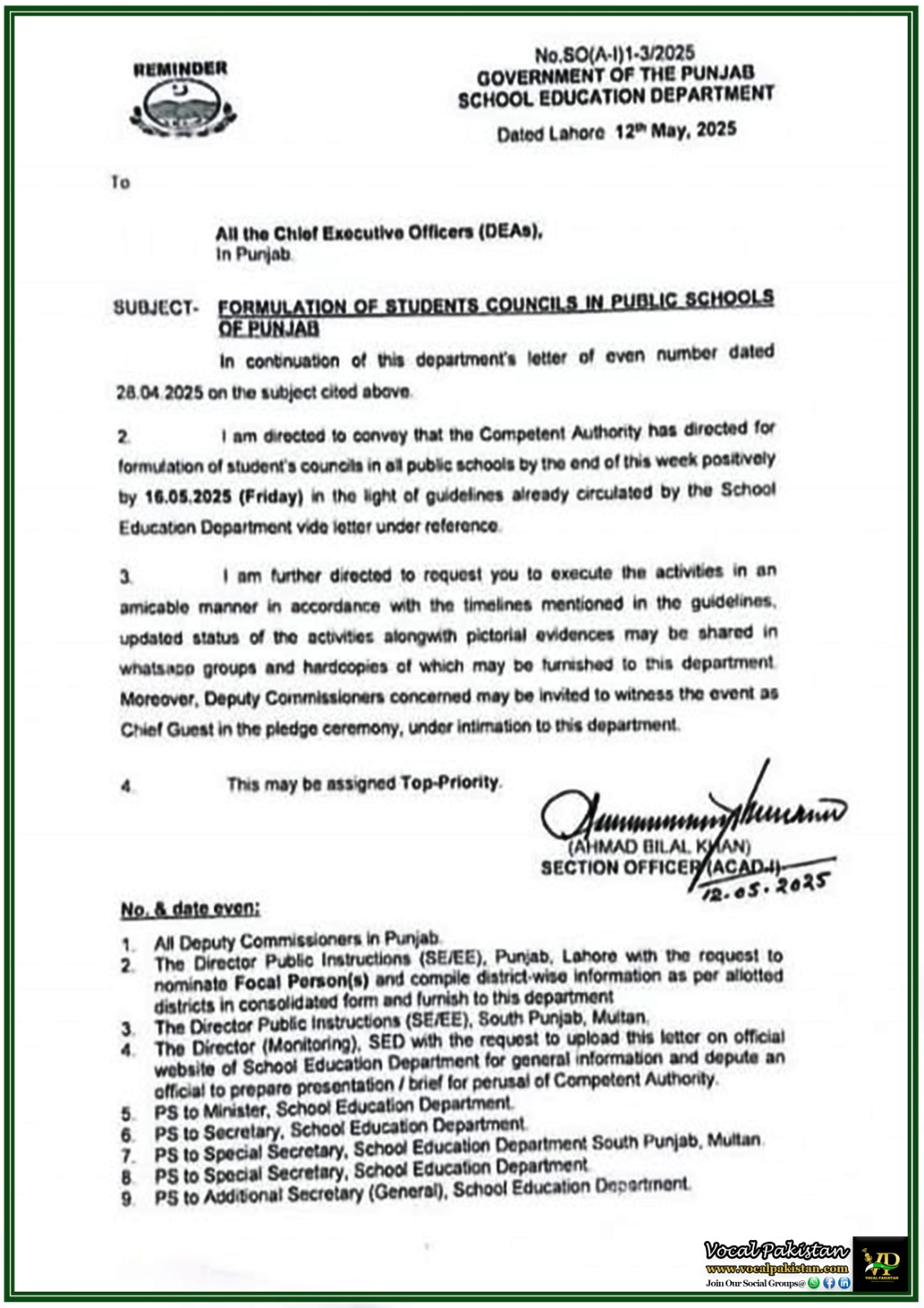 Notification / OM No. NO.SO(GA)SE&LD/(Circular)/2025 Dated 26-May-2025 Notification Issued By: School Education &...