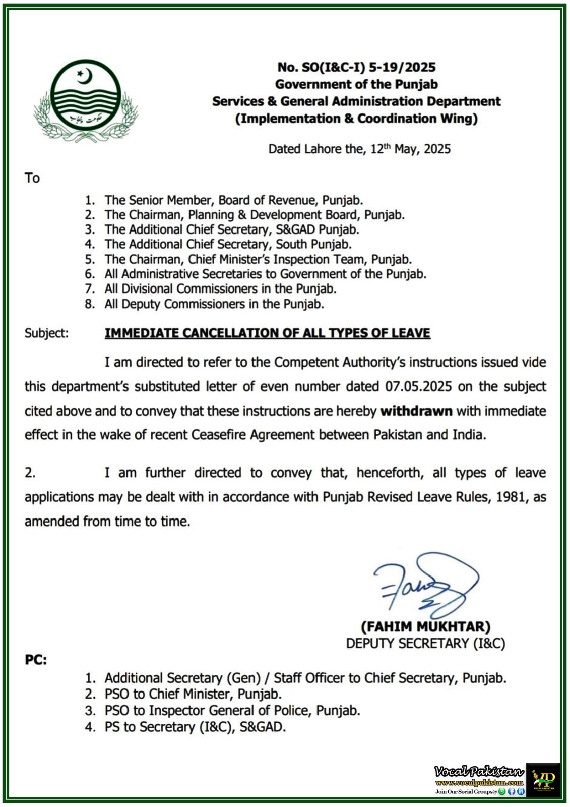 Notification / OM No. No. RO(LG) Misc:/4(18)/2025 Dated 27-May-2025 Notification Issued By: Local...