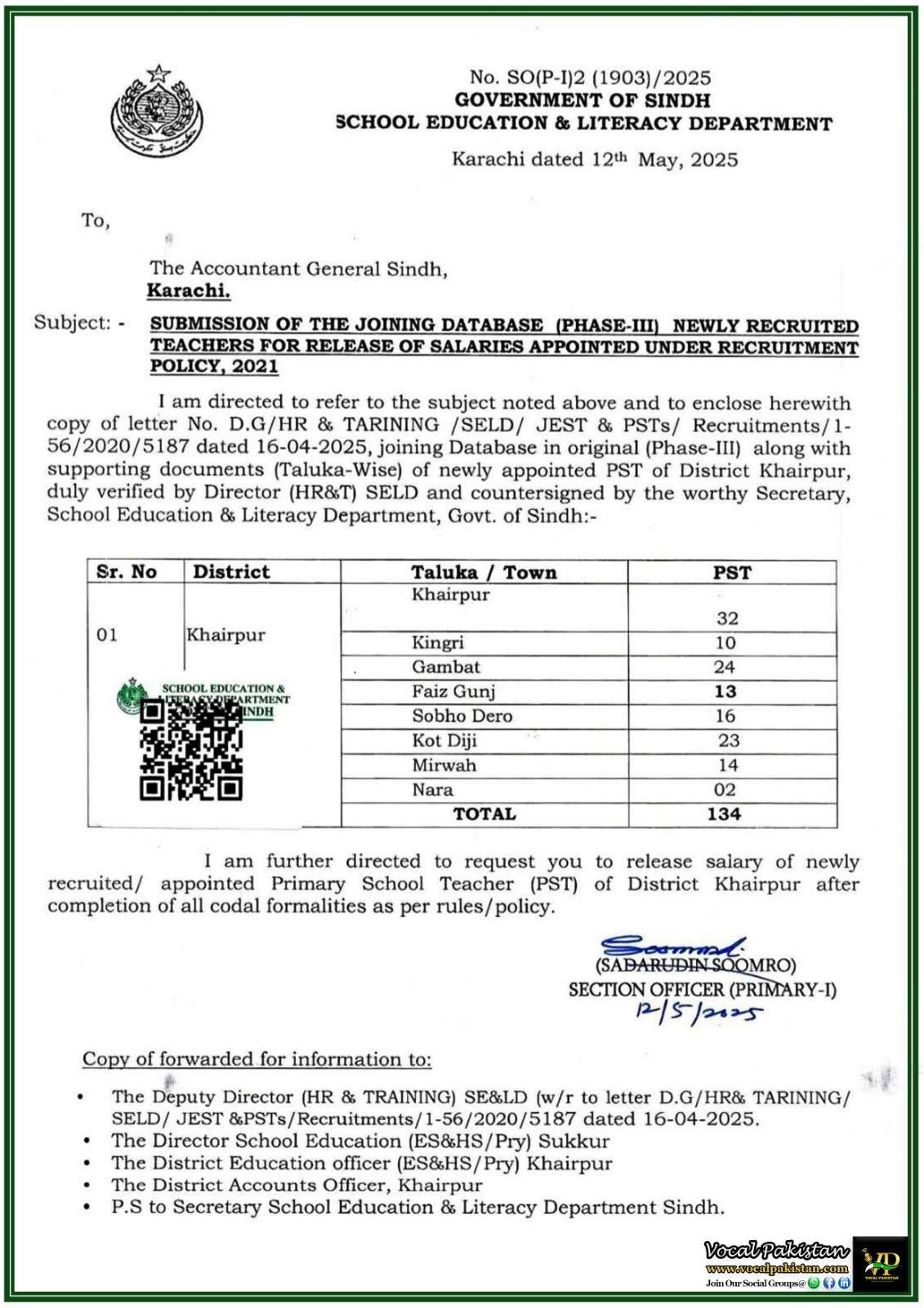 Notification / OM No. No MBD/DEN/AD(PS) 2074 Dated 23-May-2025 Notification Issued By: Office...