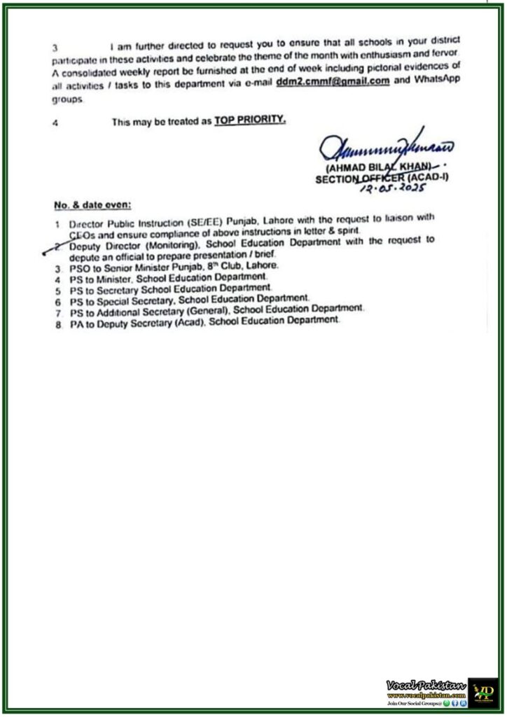 For parents and teachers searching for the latest school instructions in Punjab, or the monthly themes in schools 2025, this notification is an important one to follow. It also helps those looking for updates on Punjab School Education Department directives, co-curricular activity schedules, and how to implement government initiatives in schools.