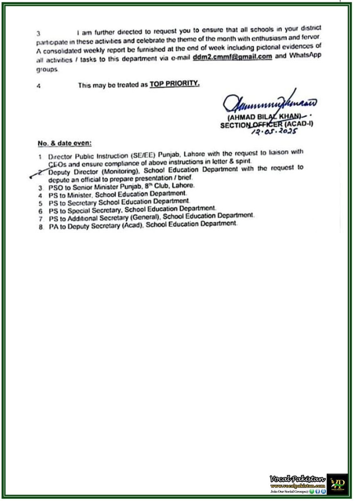 Dated Lahore, the 12th May, 2025